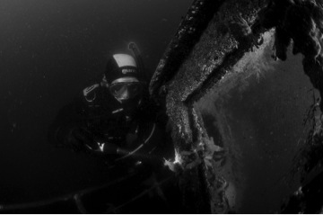 Mike按照曾阅读到的有关规定,游到沉船内。到达靠近船尾的一个狭小的工作空间后,他取出一个黄铜阀和一个压力表作为他的潜水纪念品。然后他开始返程到下甲板的地方,这个时候他还有充足的气体,还有15分钟的免减压时间。剩下的时间,他就继续探索船的一些开阔区域。