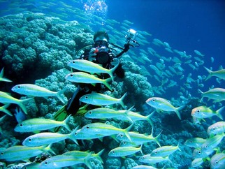 2、珊瑚礁潜水:潜水者乘坐快艇到国家珊瑚保护区内,置身于形态各异的珊瑚和五彩班谰的热带鱼类种群之中...潜水深度:可达20米以下,潜水时间:一小时(含培训时间)。