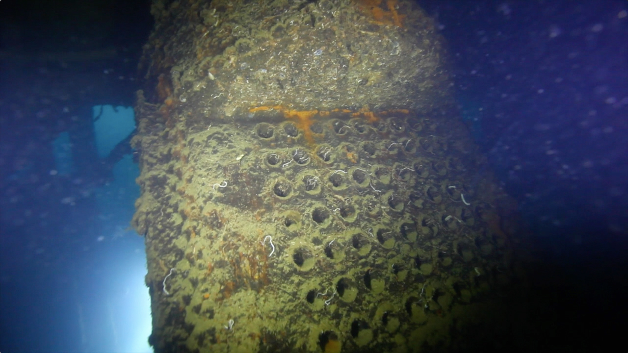 它覆盖着良好的珊瑚,尤其是非常大的莴苣珊瑚,海绵和鱼群,包括梳鱼,笛鲷和蝙蝠鱼,再加上无处不在的狮子鱼和鲉。在这里生活的海洋生物也是个很好的看点。船中部的锅炉房舱室有一大群常驻居民:Sweeplips(石鲈),每次造访都可以与它们相遇。