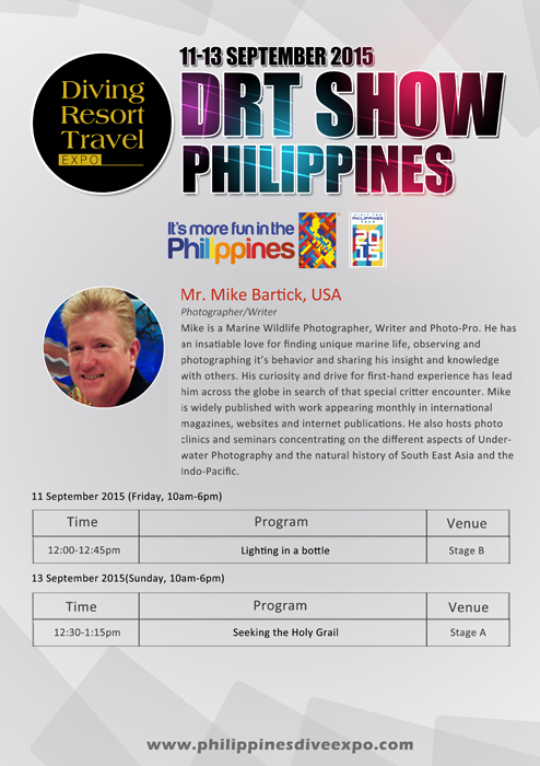 2015年菲律宾国际潜水暨度假观光展(DRT Show Philippines 2015)将于9月11-13日在菲律宾SM Megatrade Hall举办。