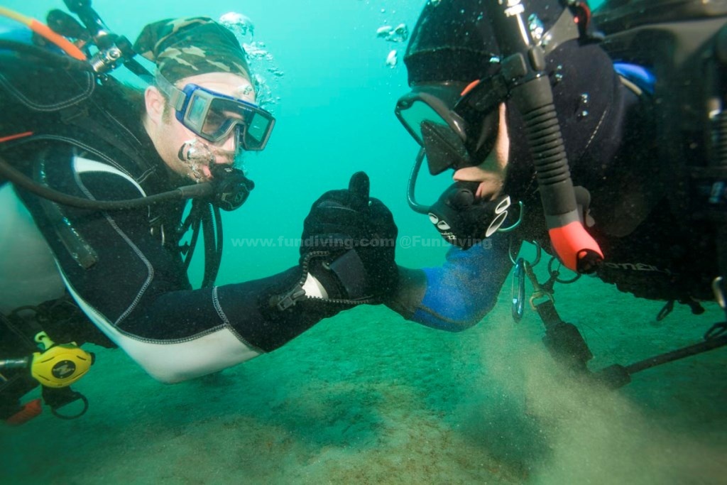 需要沟通的问题:二人在水下的沟通,是直接拉人?拍人?敲丁丁棒?喊名字?晃眼睛?还是其它方式。需要提前达成一致。有的潜水员不喜欢在水下被人拉和拍。