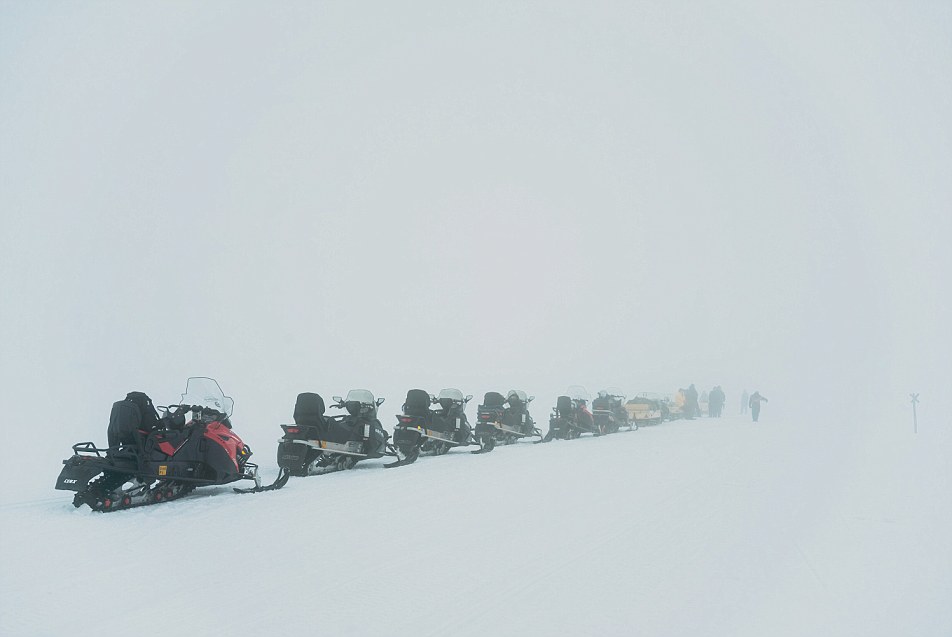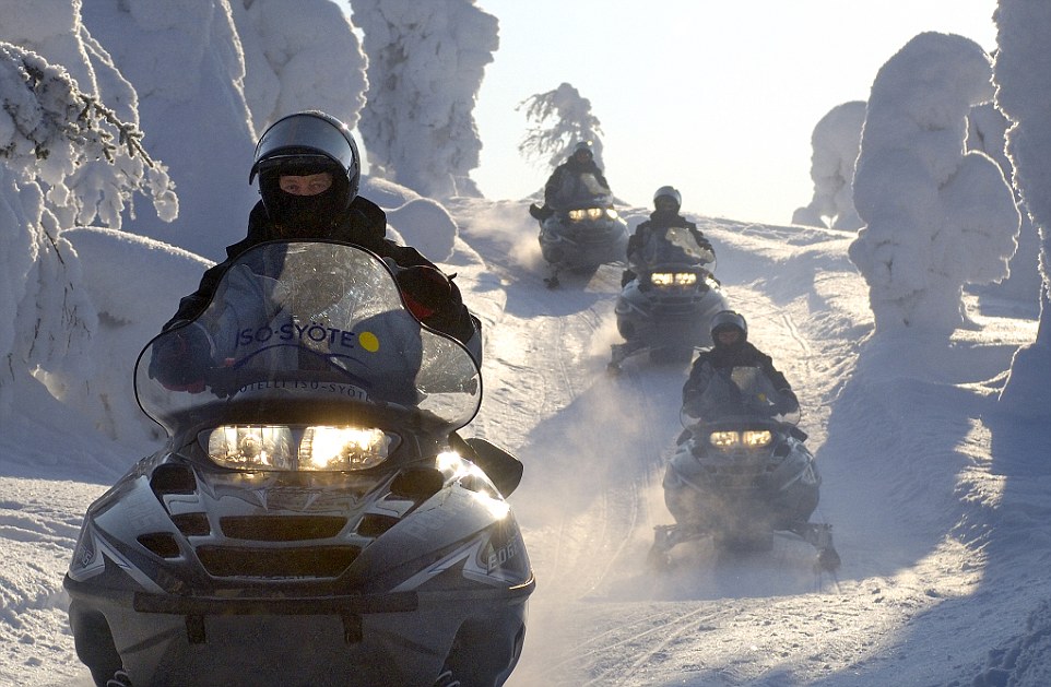 骑着雪地摩托的探险者