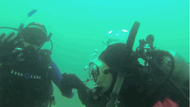 当天女友Sarah和她的哥哥还有一票好盆友一起潜水,完全不知道Markie早已经在那里等她。