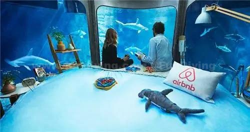 不开玩笑 这个水下套房能让你睡在鲨鱼堆里,在巴黎水族馆里,鲨鱼馆里水深10米,总共容纳了3万升的水,以及35条鲨鱼。 平日里你只能站在走廊里观看,现在考验时刻到了,有一个独特的机会可以让你住在鲨鱼环伺的水下套房里,全视野、以及更近距离的接触它们,你怎么想?Airbnb与法国设计机构ubibene