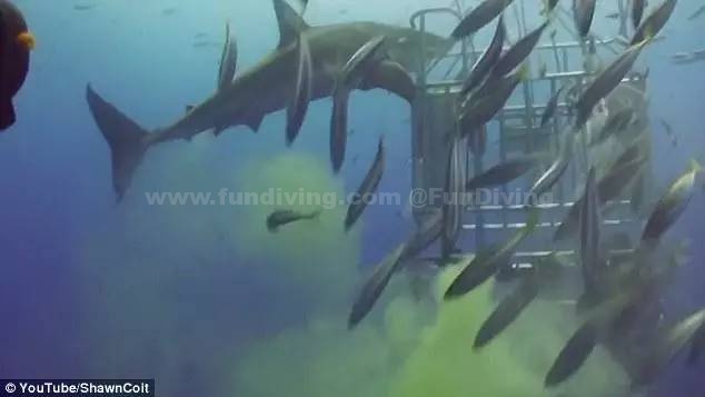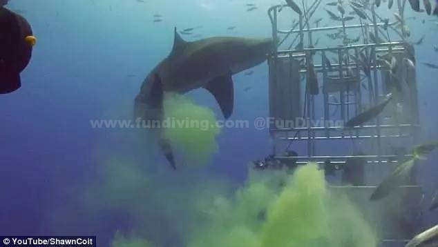 一言不合!大白鲨很生气向潜水员排便并试图咬开铁笼