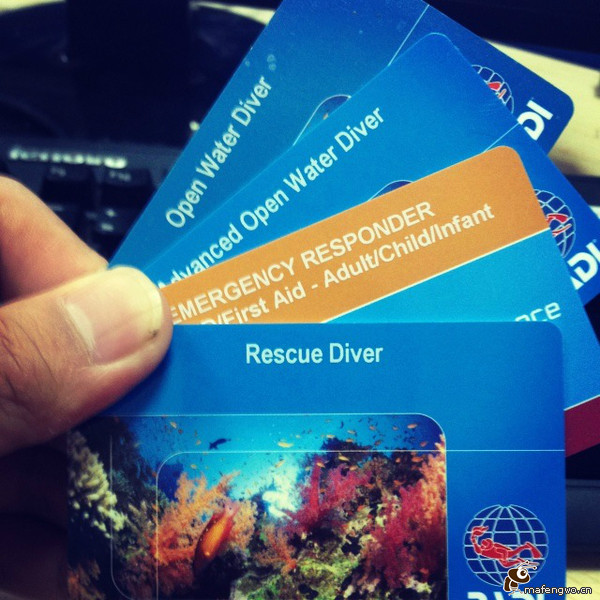 潜水长已经是专业级的潜水运动员了,属于专业潜水教练协会(PADI)的一员。这是需要每年缴纳一定额度的会员费给PADI的,一百多澳元,约一千人民币。