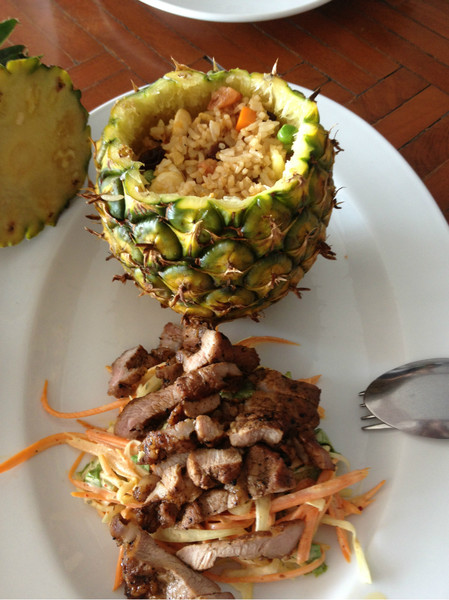 泰餐是很有意思的,它会用很多的香料和调料,而且荤素搭配合理,很是可口。虽然现在正在去皮皮岛的船上敲着这些字句,心里突然十分想念在涛岛和本地人一起喝酒 ,喝得开心的,就会有一个人从家里拿来炖好的本岛鸡,鸡汤香味浓郁,鸡肉口感极好,哎呀呀,怀念啊。在国内第一度假胜地三亚蜈支洲岛上的中餐厅包厢里吃的本岛鸡也是原味鸡汤,地道鸡肉,可比起涛岛的散养本岛鸡还是要差一点自然的野味。